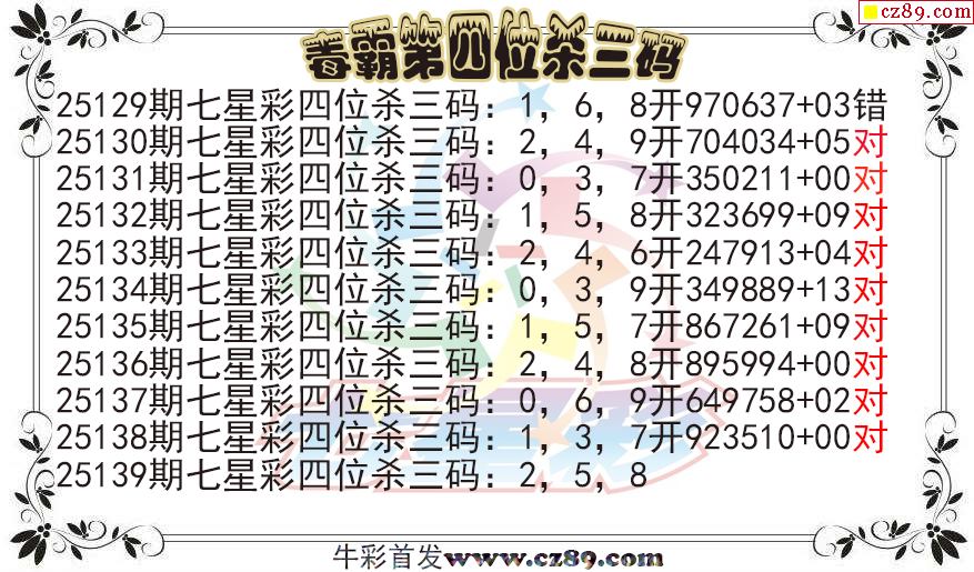 > 七星彩2025139期毒霸第四位杀三码图迷